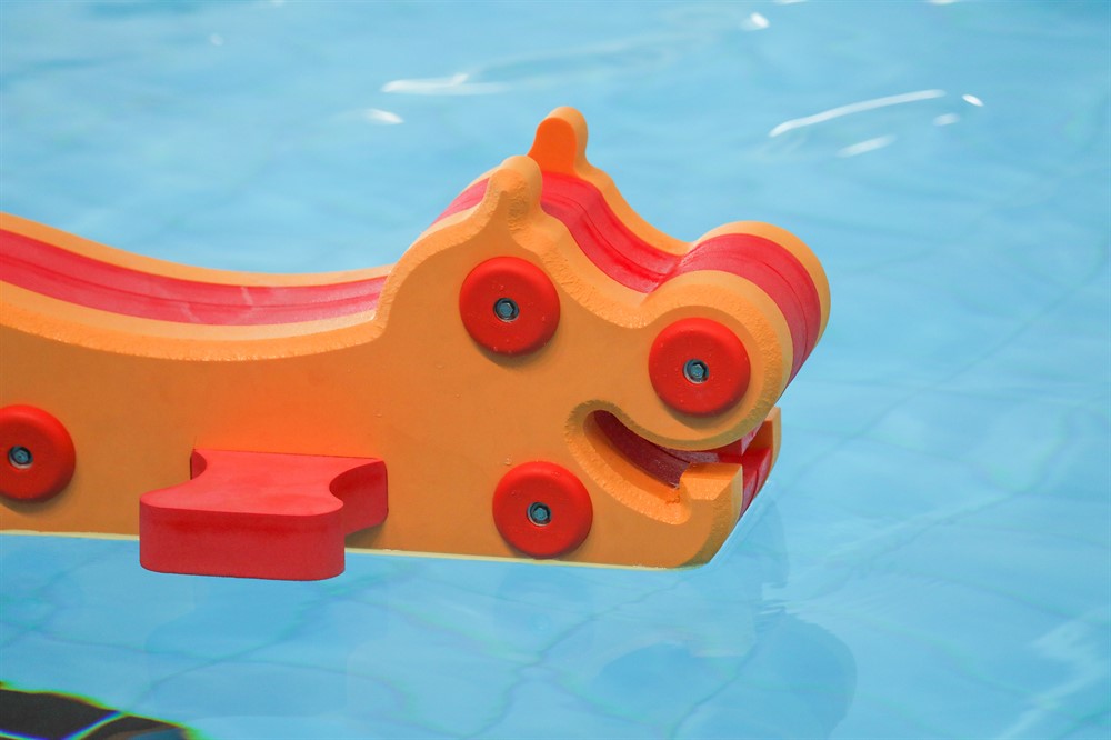 Varning: För att förebygga skador när barn hoppar från flytleksaken ner i vattnet, se till att den placeras tillräckligt långt från poolkanten och/eller i mitten av bassängen.