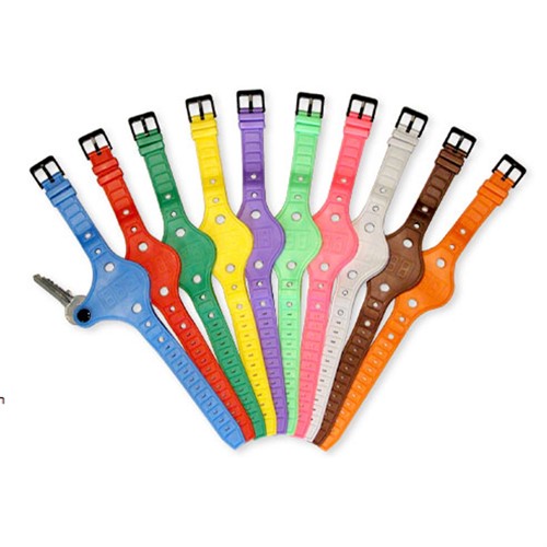 Nyckelband "Mykee", av mjukt plastmaterial. Armbandet sitter tryggt och bekvämt på armen.