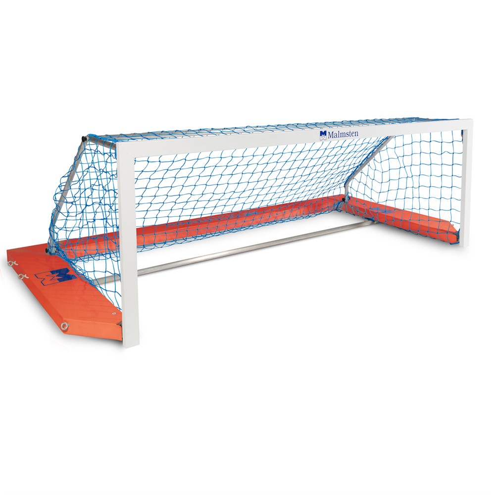 Vattenpolomål Malmsten med mörk orange flytkropp. Den tillförlitliga ramkonstruktionen är tillverkad av aluminiumprofiler med flytkropp. Det breda flytelementet medför utmärkt stabilitet och vattenläge.