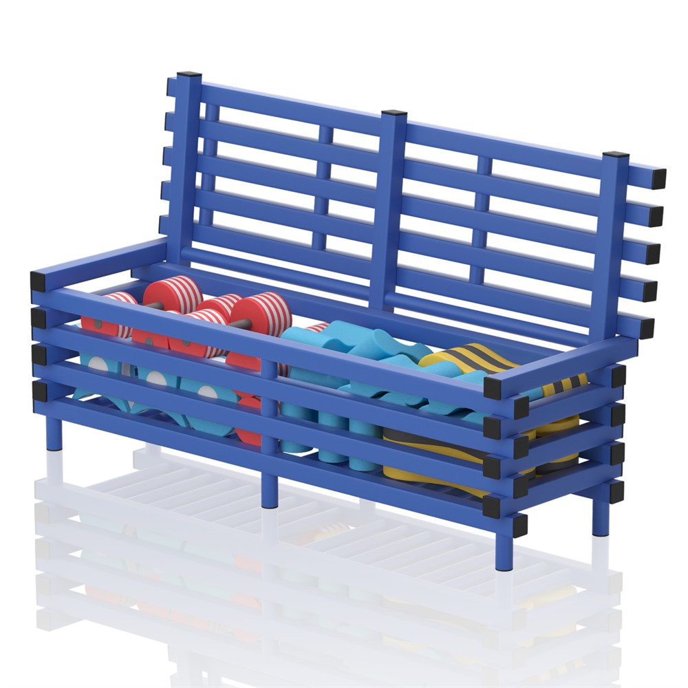 utomhus och inomhus. Bänken passar utmärkt att användas i simhallar, omklädningsrum, sportklubbar,