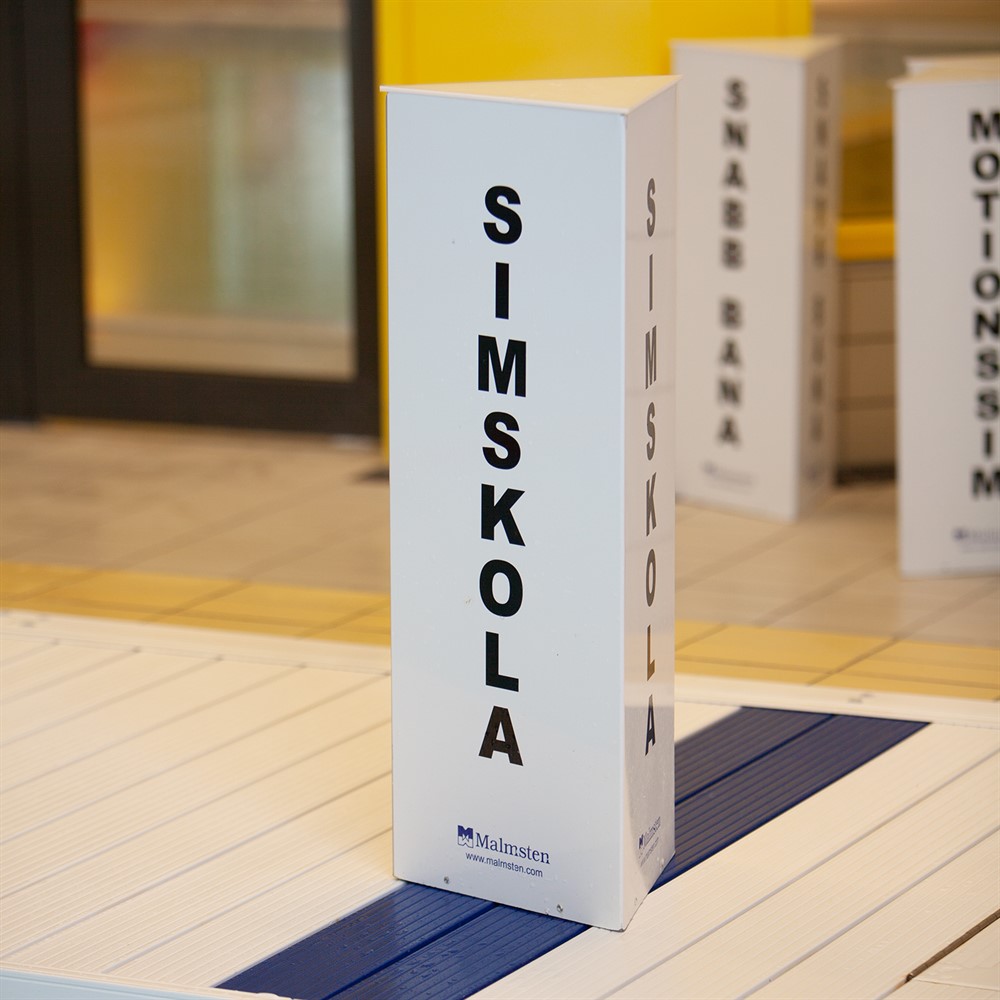 På Malmsten tillverkar vi skyltar efter era önskemål och behov. Vi har ett brett sortiment av standardskyltar, men utöver det kan vi ta fram förslag på anpassade skyltar - allt för att underlätta besöket i simhallen för era gäster.