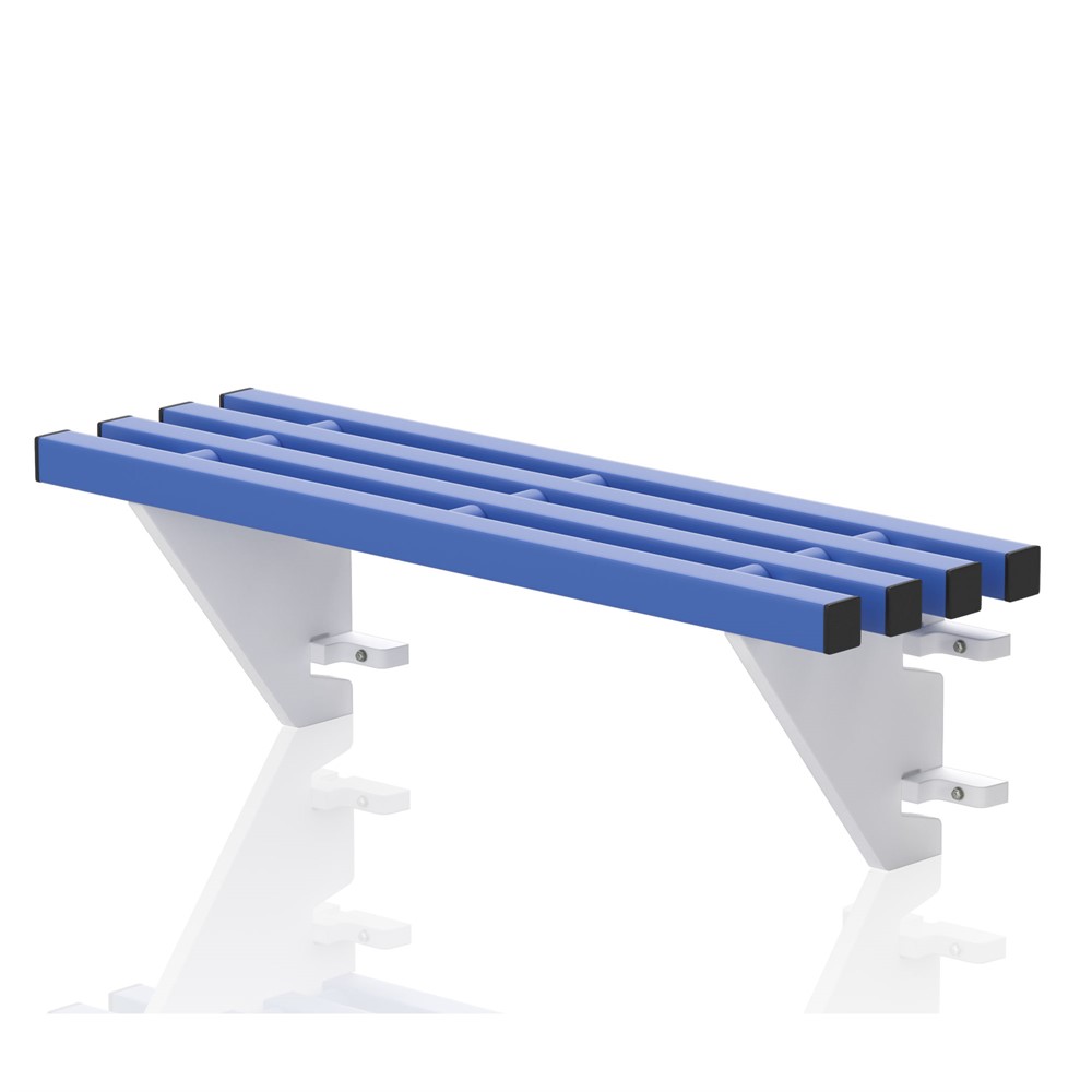 Stabil sittbänk för väggmontage, anpassad för tuffa miljöer både utomhus och inomhus. Bänken passar utmärkt att användas i simhallar, omklädningsrum, sportklubbar, skolor och lekplatser.