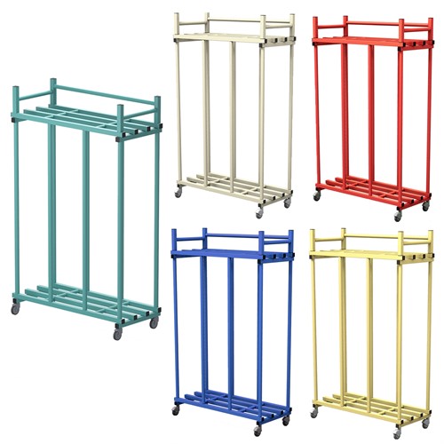 Hylla utrustad med hjul varav 2 låsbara och tophylla. Praktisk för för mattor och Pool Toys.