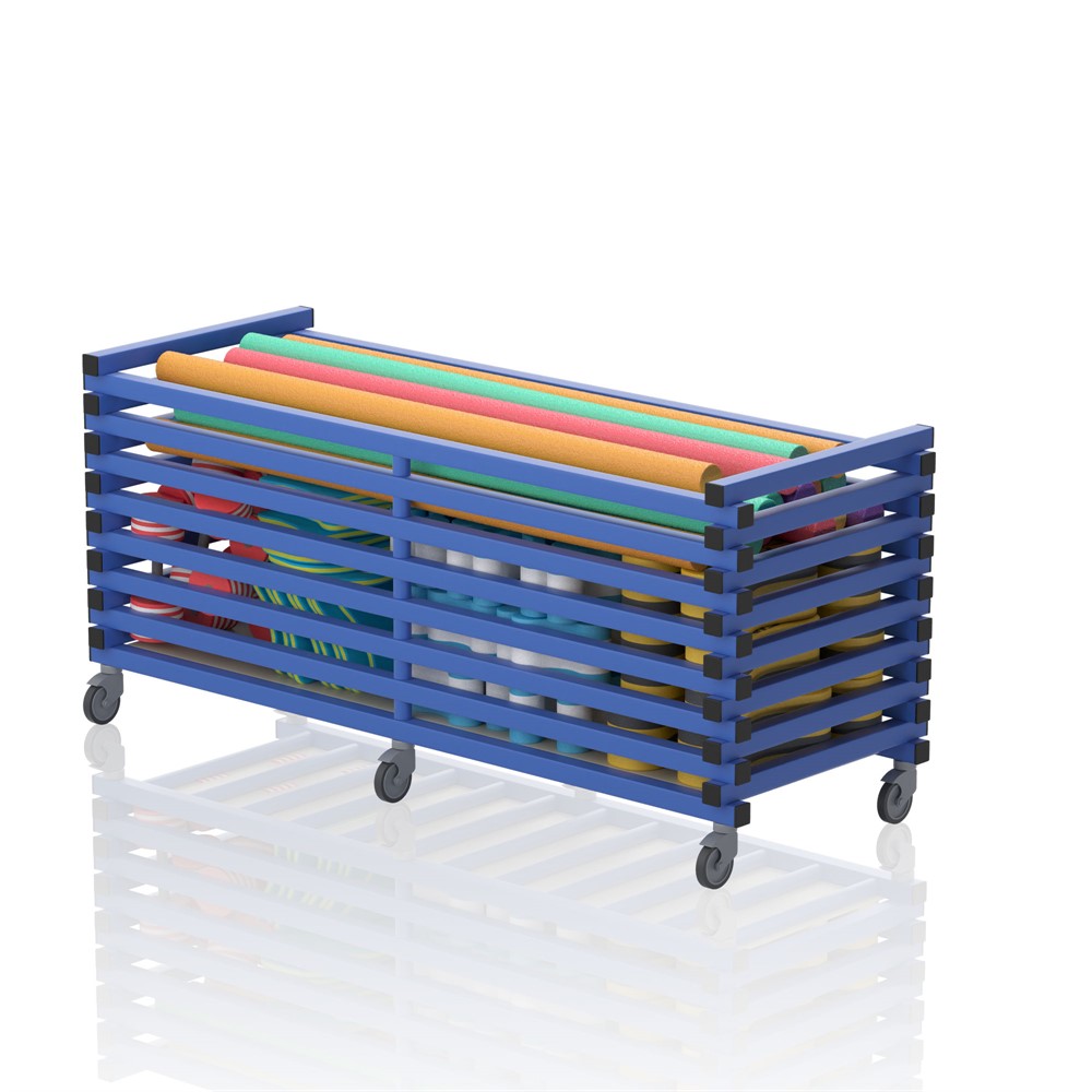 Utmärkt till förvaring av alla pooltillbehör som bollar, livvästar, flottar och poolleksaker. Lätt och hållbar vagn