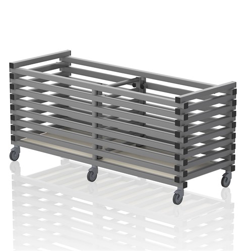 Vagn med fack utan lock. Utrustad med hjul varav 2 låsbara. Idealisk för transport av utrustning i och runt