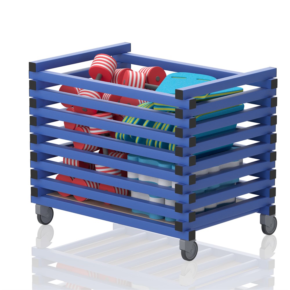 Vagnu utrustad med hjul varav 2 låsbara. Idealisk för transport av utrustning i och runt poolområdet. Utmärkt till förvaring av alla pooltillbehör som bollar, livvästar, flottar och poolleksaker. Lätt och hållbar vagn som passar utmärkt att användas i simhallar, omklädningsrum, sportklubbar, skolor och lekplatser.