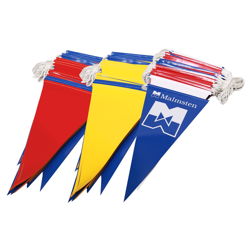 Flaggorna är tillverkade av vinylväv och påsydda på ett nylonrep som inte absorberar onödigt vatten.