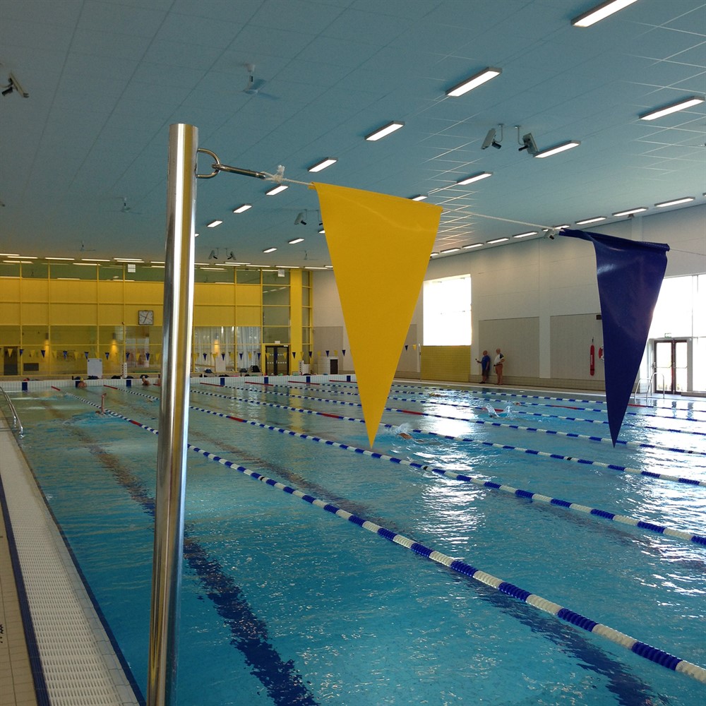 Tjuvstarts- och ryggsimstång i rostfritt stål, tillverkad av Ø 40 x 2 mm rör med påsvetsad ögla.