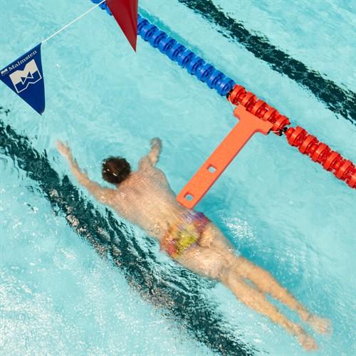 Under Water Trainer är ett redskap som passar alla nivåer och åldrar. Du som coach kan tydligt, enkelt och snabbt markera på varje bana hur långt simmarna behöver kicka under vattnet, innan de börjar sin simning. UWT fungerar för alla simsätt och kan användas i träningen under pågående serier eller i undervattensjobbet på starterna. UWT kan flyttas till önskat avstånd från starten och vändningsmomenten.”