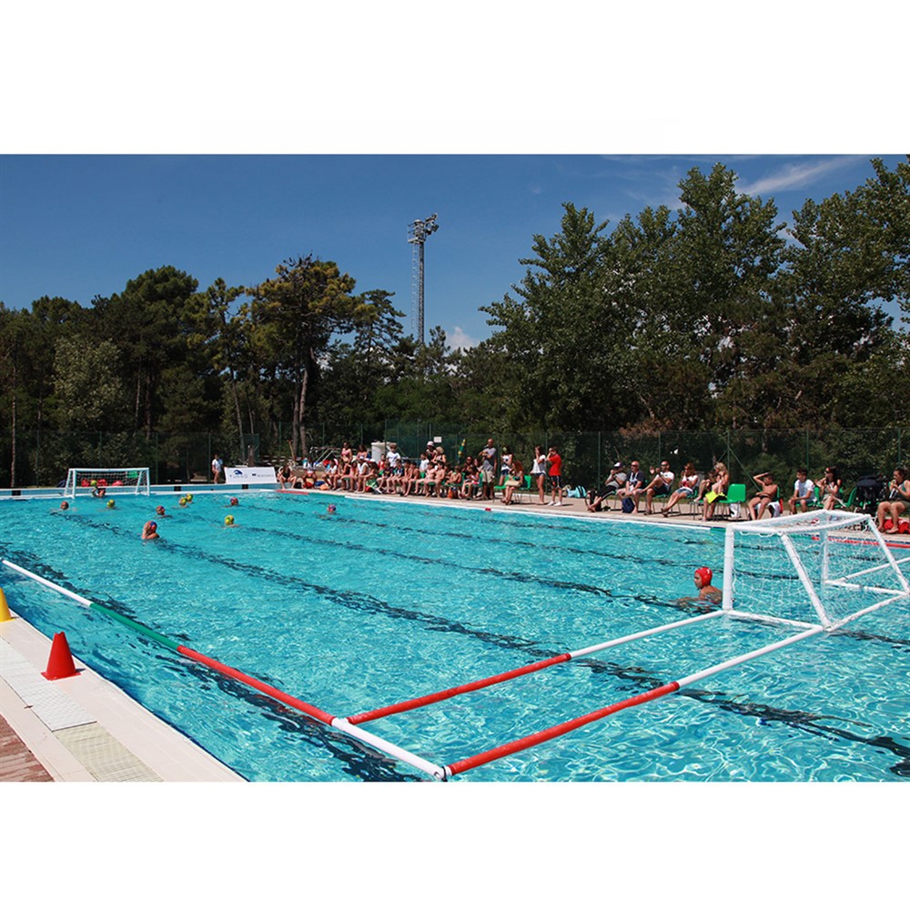 Detta kompletta set innehåller spelfält 20 x 15 m (justerbart till 20 x 11 m).