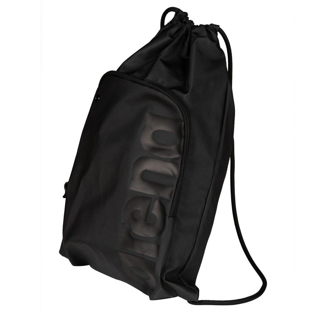 Designad för att rymma träningsutrustning för simning eller gymmet, vår All Black Team Sack är en mångsidig väska. Dess svart på svart stil med en upphöjd logotyp har en cool utseende. Det vattenavvisande tyget kommer att skydda dina tillhörigheter och förhindra att väskan blir blöt. Lägg mindre föremål i den yttre fickan med dragkedja och bär dragsko över axeln eller som en ryggsäck. Den har ett rymligt huvudfack och en extern ficka med dragkedja.