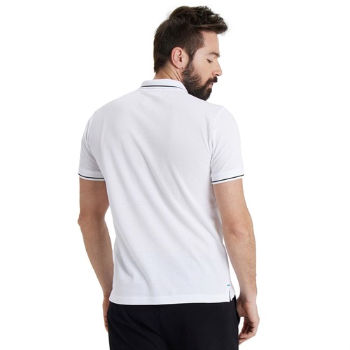 Den kontrasterande kanten på ärmarna och kragen matchar nyansen på logotypen med tre diamanter som pryder ena axeln. Kombinera den med våra Solid Bermudas.