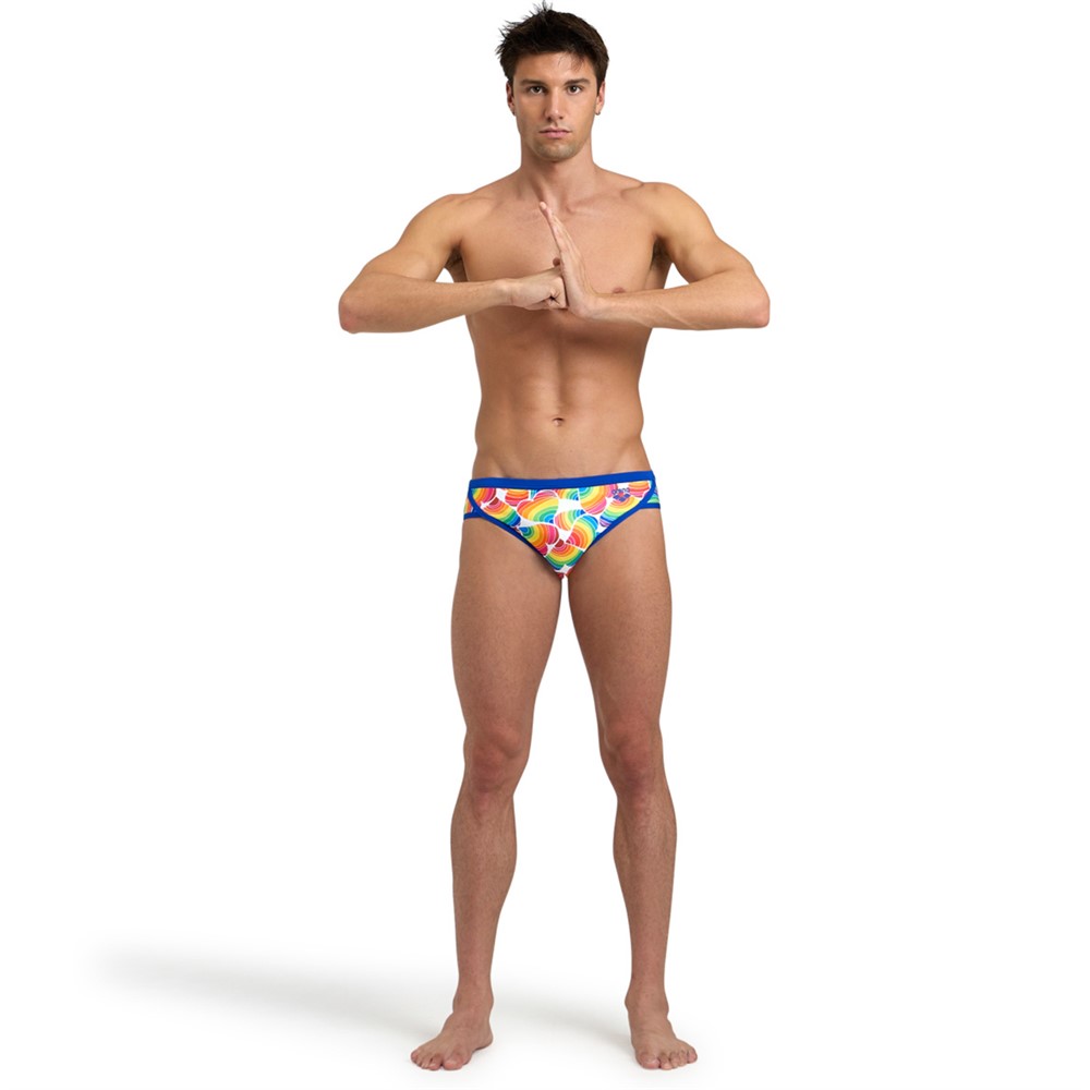 Badbyxor med Regnbågsrandiga hjärtan, avslutas med blå kant för en extra färgklick. Är en hyllning till Pride rörelsen. Kombinera dessa med ett par fenor från samma kollektion.